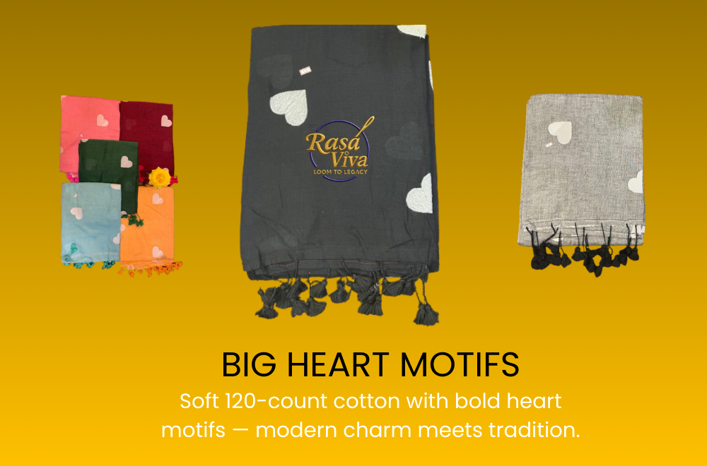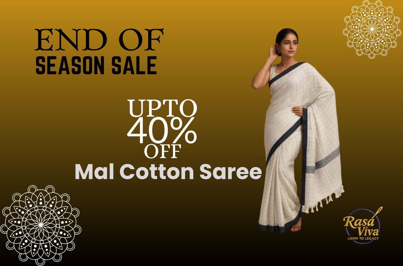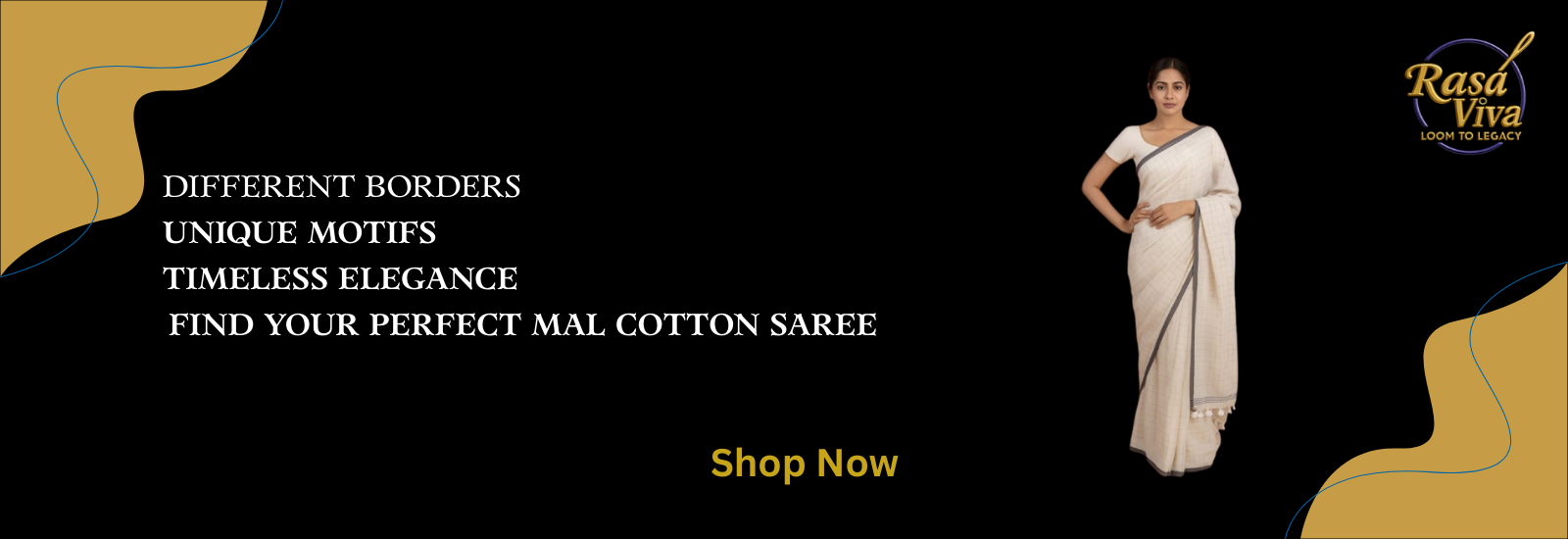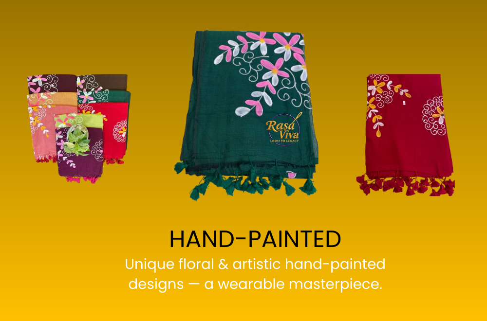 At Rasaviva – The House of VioletVeil, we celebrate heritage through handpicked sarees. From Mal Cotton to Jamdani and hand-painted drapes, each piece carries timeless elegance and craftsmanship.